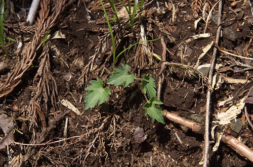 | 葉の状態 | 葉形 | 三角状長卵型、葉先は尖る。葉の縁から浅〜中裂するが乱れは少なく葉形として整って見える。基部は心径にならない。両面とも無毛。 |