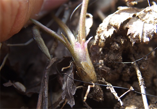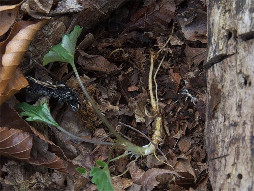 ![]() 少し掘り返して根茎を確認してみました。根は白いです。 |