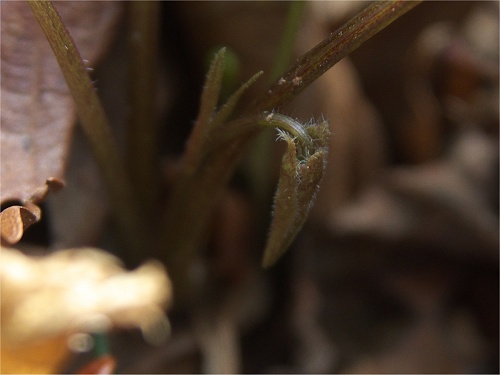 ![]() 別の個体です。いくつか開花株はありましたが大抵は1つでした。咲いていない株では2つのつぼみを見ましたが、花付きが 悪くて雑種=多花という訳ではないようです。 |