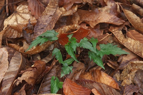 ナガバノスミレサイシンとエイザンが近距離に混成する場所に突発的に発生する。 | |