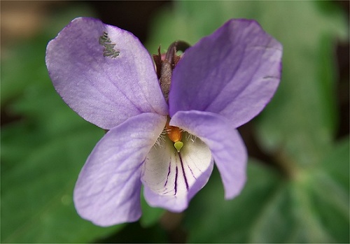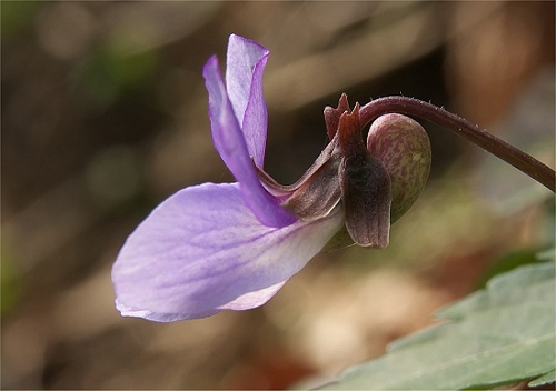 ![]() 距はぽってりとナガバノスミレサイシンに近い。 萼片や付属体に毛は無い。花柄には微毛がある。 |