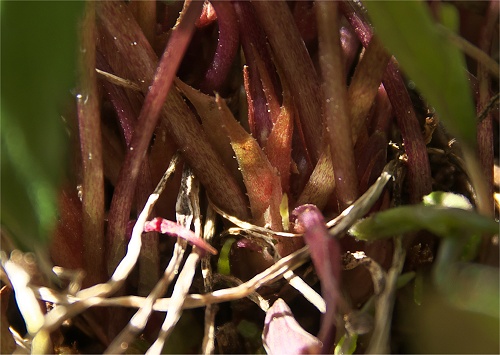 ![]() 撮影:2104.12 花期の頃の葉裏は紫色を帯びます。 |