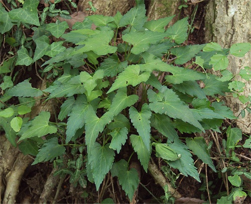 ![]() やや艶がある濃い緑色。切れ込みは不規則。 |
