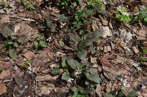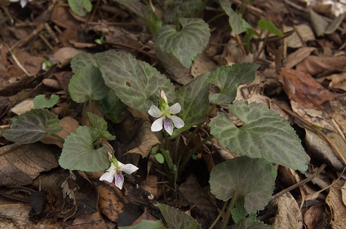 ![]() 撮影地:東京都八王子市西部(2013.4.7) 茶色になるタカオスミレや黒っぽいハグロスミレとは別けて扱われているフイリヒカゲスミレです。 | ||