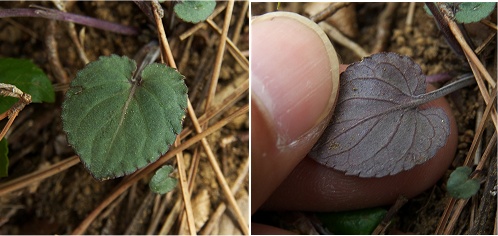 ![]() 左が表葉。 右が裏葉です。特に裏は紫色を帯びます。 |