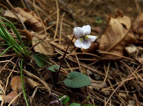 ![]() 撮影地:長野県上諏訪 2013.5.6 枯れ葉や枝の堆積物の隙間から伸びると全体的に間延びします。 |