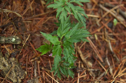 ![]() 撮影:東京都檜原村(2013.5.12) 花後は葉が大きくなり夏葉が出てきますが夏葉も5葉に別れていました。 |