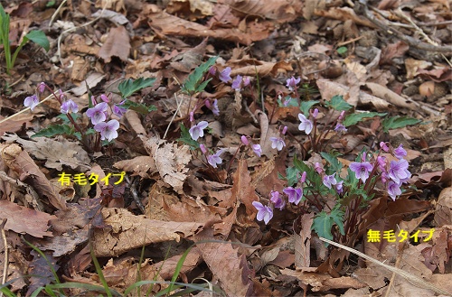 ![]() 花もエイザンのような紫条が多い。同じ群落の中に側弁の無毛タイプと有毛タイプがあるのが興味深い。芳香は無し。 |