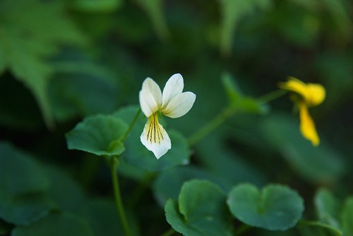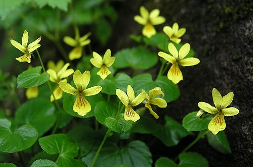 高山帯でしかみられない黄色いスミレで、スミレと名前がはいらない唯一のスミレ。 葉の先が少し凹んでいるものも多い。 ●「ジョウエツキバナノコマノツメ」。葉が厚くがっしりしたもの。至仏山や谷川岳の蛇紋岩の岩場で見られる。 ●「アカイシキバナノコマノツメ」。南アルプスで見られる。果実に毛がある。 | |