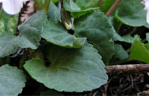 マルバスミレは、毛が無いものを差すのですが、あまりにも希なため、毛があるものもマルバスミレと呼ぶようになったそうです。 花の側弁には毛があるものと無いものがあります、毛があるものを「ヒゲケマルバスミレ」と呼びます。 | |