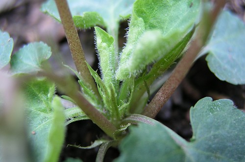 ![]() 左が毛のないタイプで、右が毛があるタイプでヒゲケマルバスミレと呼びます。 |
