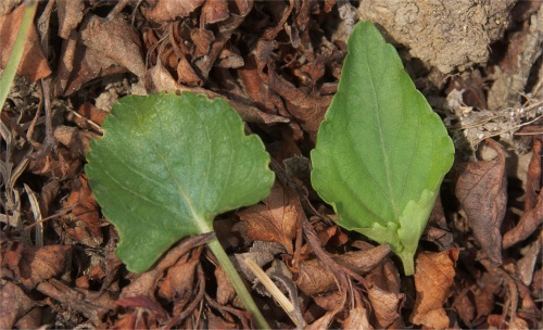 心型のタチツボスミレの葉に偏ることもあり得ると思います。 花はニオイタチツボスミレに似て中心部が白く、強い芳香があります。 この雑誌は比較的発生しやすいようであちこちで見かけます。雑種強勢でかなりの大株になることもあります。 | |