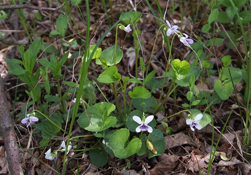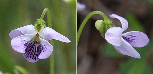 図鑑などにはニョイスミレの高山型と書かれている。 葉が丸く表面には微毛がある。 葉の基部は重なることが多い。 標準の花は淡紫色だが、白色も見られ、ニョイスミレと紛らわしいタイプもある。 また、紫色が濃いものをムラサキコマノツメとする記述もあるもののよく分からないというのが私的な意見です(^-^;) | |