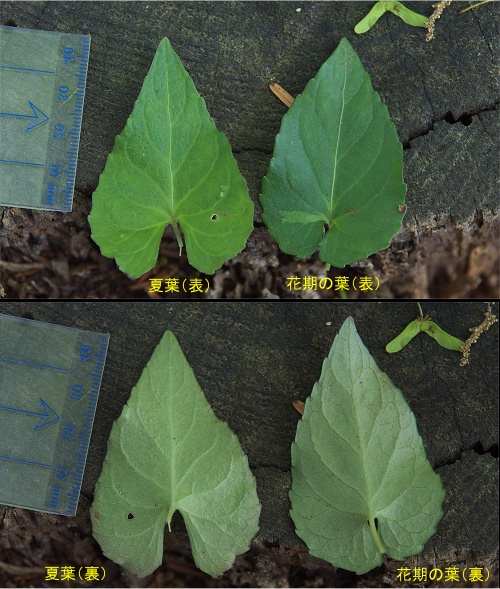 | 花期の葉と夏葉の比較 |