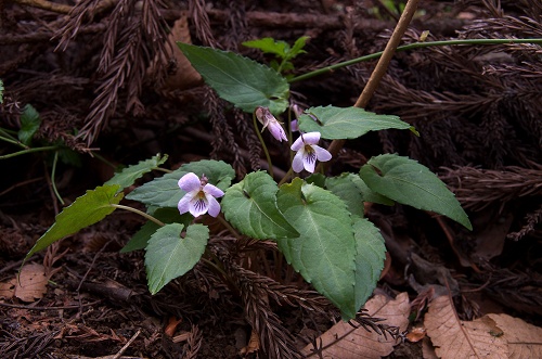 | 葉の状態 | 葉形 | ヒナスミレの葉を長くした感じ。基部は心形で重なる。但し夏葉はV字形。 |