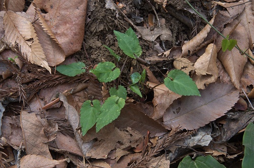 ![]() 2010.4.10撮影 どちらかというとヒナスミレに近いですが、長さがあります。花期の葉裏はやや紫色を帯び、脈に沿って少し微毛があります。 |