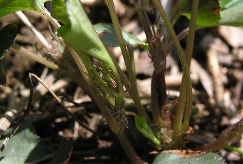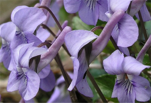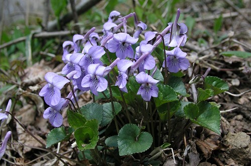 ■別名を「テングスミレ」ともいう。 ■標高1500m以上には「ミヤマナガハシスミレ」という変種も生育している。こちらは更に花色が濃く、葉裏に紫色を帯びる。 | |