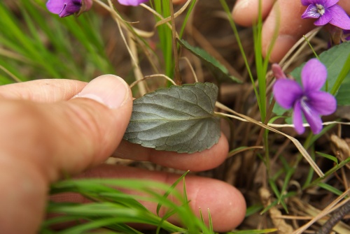 サクラスミレとマキノスミレが混成する場所に発生するが両者の花期が少しずれてるのでなかなか出会えない。 | |