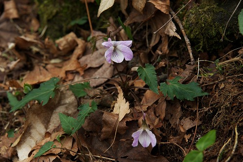エイザンスミレとヒナスミレが混雑する場所で比較的おおく見つかりますが花が咲かない個体も多いです。 花の状態には個体差があるのですが綺麗なピンク色を帯びることが多いようです。 エイザンスミレの血が濃いと芳香が出るようです。 | |