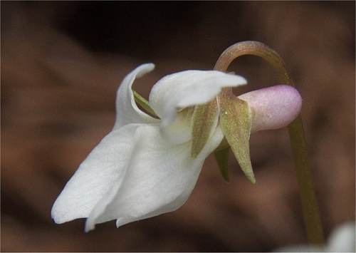 ![]() 各弁の紫色の筋がまったく無く真っ白です。 即弁には通常種と同じように毛が密生します。 |