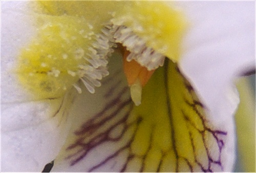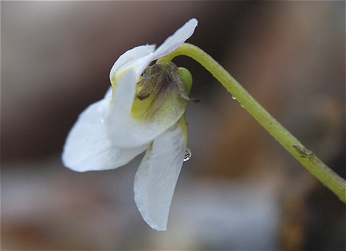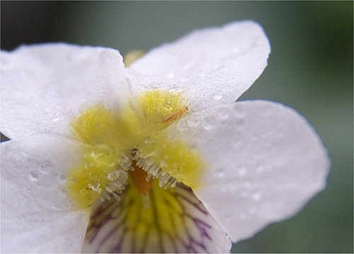 ![]() 花柱は筒型で、とてもシンプルです。このことから原始的なスミレではないかという見方もあります。 |