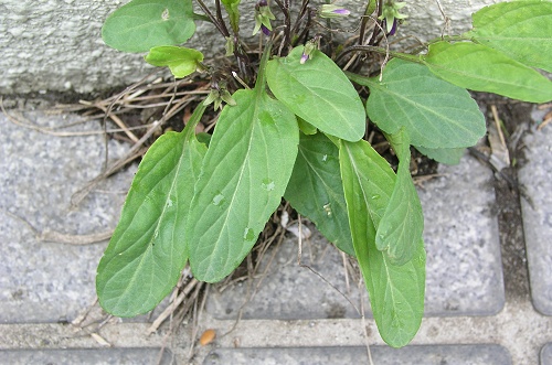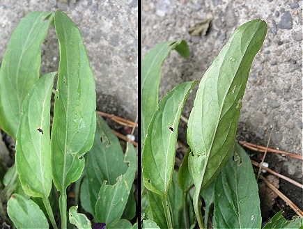 | 葉の状態 | 葉形 | 花期の葉は長さ5〜8p。へら型。葉柄にははっきりとした翼がある。普通毛は無いが微毛があるものもある。 |