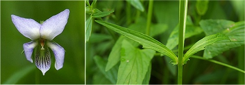 ![]() 花弁裏の淡紫色が染み出たかのように表側も淡紫色になる個体もあります。 托葉も長く全縁が基本形。 |