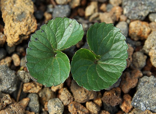 ![]() 葉は円形で、厚く。かなり光沢感があります。 |