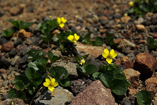 ●日本のタカネスミレの仲間の母種にあたるスミレで、東北地方に一部の山にしかありません。 ●秋田駒ヶ岳では大群落があり、6月中旬頃〜7月上旬には見事な光景になります。 ●亜種には、北海道のエゾタカネスミレ、南八ヶ岳のヤツガタケキスミレ、北、中央アルプスのクモマスミレがあり、いづれも 分布域の狭い隔離型となっています。 | |