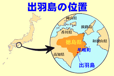 出羽島は徳島県牟岐町の沖合約3.8qにある周囲約4qの小さな島です。 山には椎の木や椿、ウバメガシなどの照葉樹林の森が広がりまた人の手によって 植えられた椰子の木やハマユウなどの亜熱帯性の植物もあり自然豊かな島です。 ★出羽島への交通★ ・鉄 道 JR徳島駅からJR牟岐線に乗り換えて牟岐駅で下車。 ・飛行機 徳島空港からJR徳島駅へバスまたはタクシーで移動しJR牟岐線で牟岐駅下車。 ・バ ス 関東方面からは品川高速バスターミナルから夜行バスが徳島駅前まで出ています。 関西方面からは神戸や大阪などから徳島駅まで定期バスが出ています。 ・船 舶 大阪、東京方面からフェリー便が徳島港に発着しています。 いづれかの交通手段でJR牟岐駅で下車して牟岐港の出羽島連絡船乗り場まで移動し連絡船 で約15分くらいで出羽島に到着出来ます。 牟岐駅を出て正面の信号を渡ると牟岐川があります、そこを川沿いに左の道を進み突き当たりが 港です。港の傍らに連絡船の発着場があります。 |