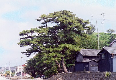 この赤松は出羽島港の入り口付近にあってその大きさと存在感でシンボル的な 存在であった。横から見ると1本の大松に見えるが実は2本が根本から別れて 生えており対岸から見ると下の写真のように2又になっている。ほぼ同じ日に 芽生えて同じように成長したのであろう。しかし、近年松食い虫によって枯れ 始め倒木の危険があるのでまず片方が切られ、その後もう片方も切られてしま い現在は見る影もなくなってしまった。島民は松の下と呼んでこの場所を親し んでいたのだ。非常に寂しい感じがする。 定かではないが最初に移住してきた頃には既に大木だったということから推定 しても200年以上の樹齢はあるだろう。 伐採された時の切り株の写真があるので樹齢を読める方がいましたら是非推定 して欲しいです。 また、出羽島には松の大木が各所にあったが伐採や松食い虫の被害によって激 減してきている。 |