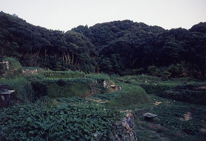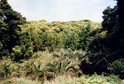 スバナ地区の最奥階段を上り暫く進むと浅い谷間に飛び出る。大概がスバナ 地区に住む住民の畑である。山間部に見られる典型的な段々畑の風景だ。田舎 出身の都会人には懐かしさを感じるかもしれない。 出羽では1家族に1つの畑があるといって過言ではなく野菜や果物を作ったり して生活の足しになっている。ところがこの畑のには明確な所有権というか法 律的な固定資産税がかかるようなものではないというのが面白いところで、島 の地権者から無償で借りているといった方がよいだろう。なので空いている畑 があれば交渉して使うことが出来たりするのである。 またこの相の谷の奥には杉林があったりするし、その昔には亜熱帯性気候を利 用して熱帯性の植物の栽培を試験的に行っていた所でもある。現在は不法投棄に よって埋め立てられてしまったがここにはカナリーヤシというヤシが沢山植えら れていた。今も谷の奥手に数株残っている。更に谷の奥には後に紹介するダムが ある。 |