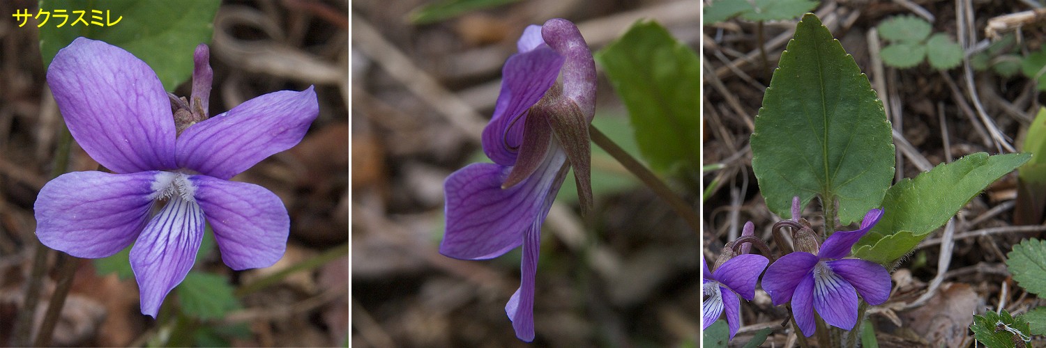 雑種生育地付近のサクラスミレ、アカネスミレ、ヒゴスミレの比較