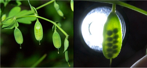 分布地域で希にしか見ることがない植物です。筆者は尾瀬では1カ所でしか確認できていませんが、他にもあると思われます。 花は淡い黄色〜クリーム色です。草丈が100pくらいになりますが、垂直に立ち上がることはほとんどなく、寝たような状態です。それゆえにツルキケマンと名前が つけられたようですがつる性ではありません。 よく似たものにナガミノツルキケマンがありますが、花色は本種より濃い黄色です。また、サヤの中の種の配列は「ナガミノツルキケマン」が1列なのに対して「ツルキケマン」は 2列になっているのが特徴です。 |
