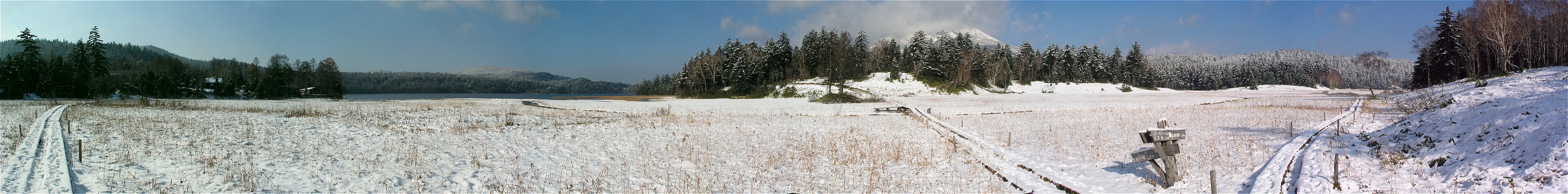■新雪の大江湿原 (2005年11月13日撮影) 待ちに待った本格的な新雪。この日は大清水ゲートが閉まる前日で事実上の最終尾瀬沼である。 そんな時にこれだけまとまった雪が降ってくれたのは幸運としかいいようがない。日が差し真っ白に 輝く大江湿原はほんとうに綺麗でした。 |