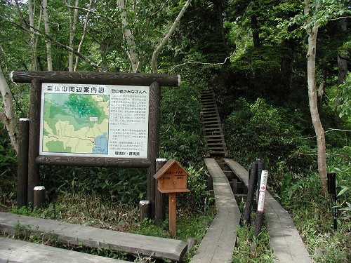 【山の鼻登山口】 いきなり急な階段があります。 |