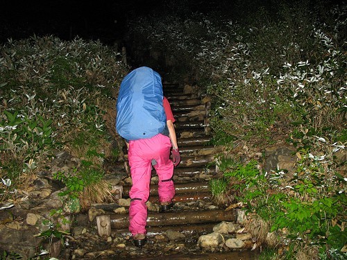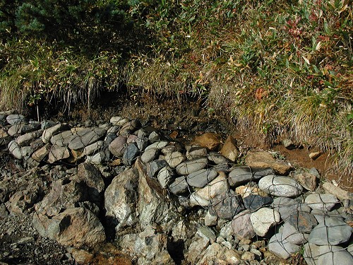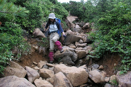 【水場〜森林限界上部】 大きめの石がごろごろした道が続きます。結構斜度もあり、下ると膝にくるところです。 |