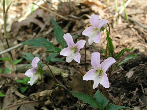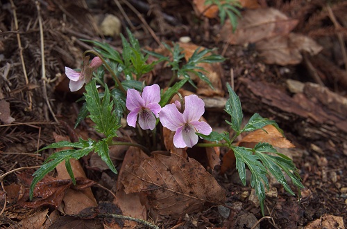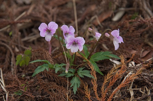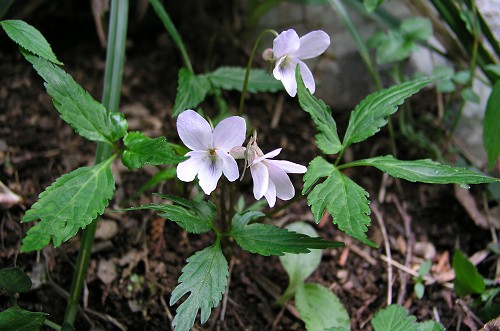 ■葉の裂け方は個体によりかなり差があり、同種のヒゴスミレのように細く裂けているものまで幅広い。 ■花の色も個体により非常に色濃いものもあり変化が多い。 ■別名を「エゾスミレ」とも呼ぶ。 | |