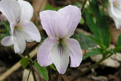 ![]() 撮影地:東京都八王子市・奧高尾(2005.4.23) こちらはスジも目立たずかなり白に近くなってます。また花弁基部に黄緑色が目立ちます、これはヒゴスミレの特徴でもあるのですが・・・。 |