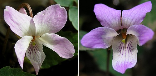 ![]() 撮影地:東京都八王子市・高尾山(2005.4) 淡いピンク色の清楚な花のスミレです。この個体は標準色のヒナスミレです。 | ||